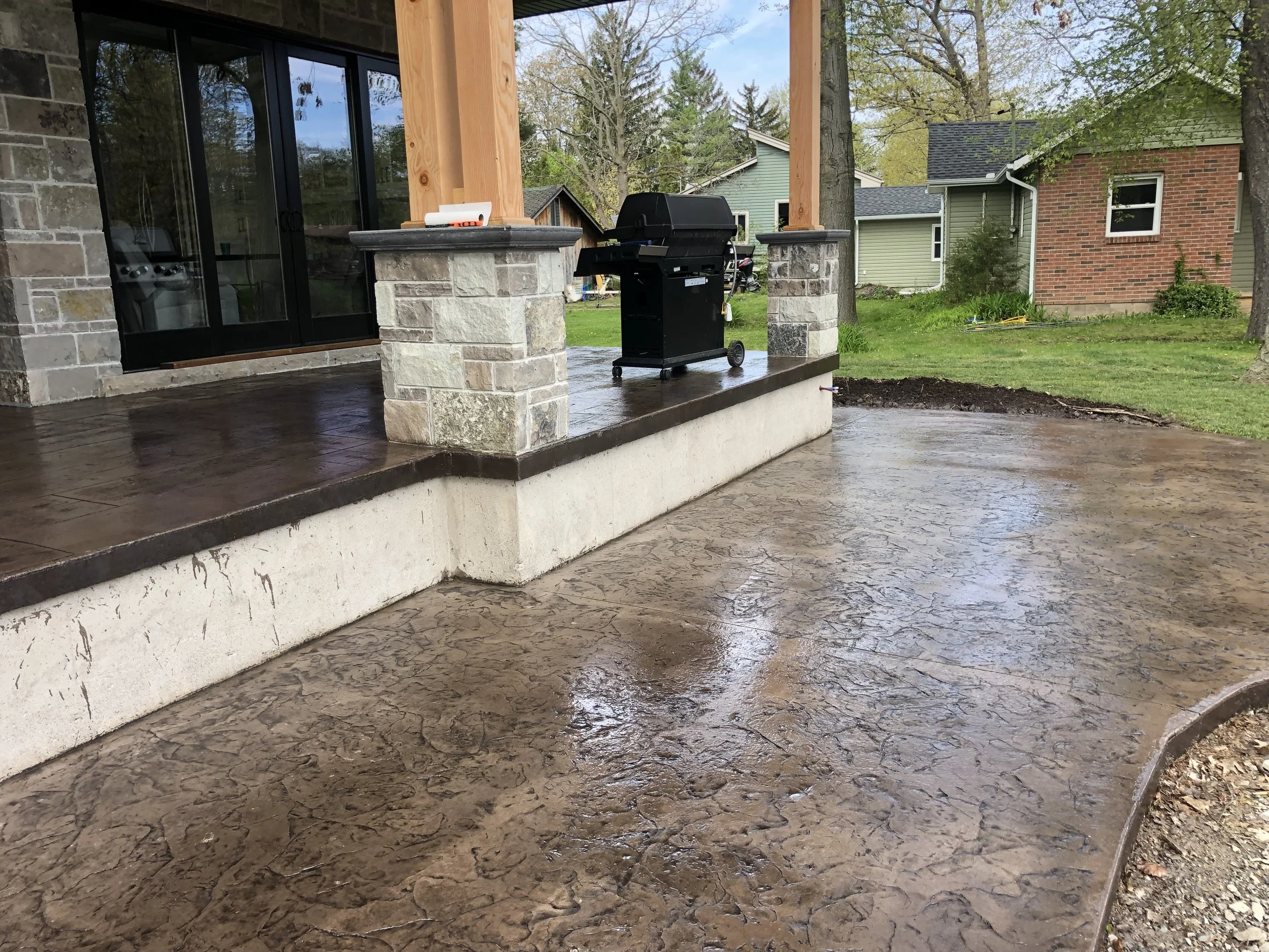 A customized Stamped Concrete project, such as an outdoor kitchen, a gorgeous outdoor fire pit, a pizza oven or an attractive pool deck, has a rich appearance and can be tailored to any architectural style. We provide a selection of natural textures that match the surrounding natural stone, tile, or wood surfaces.